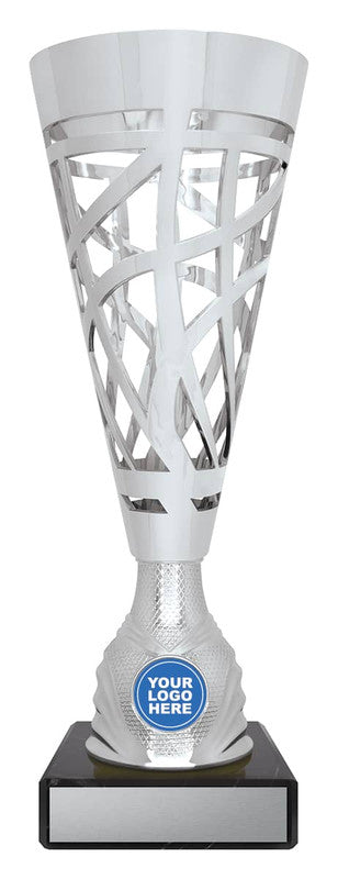 Super interesting design of trophy with swirling design plus great space for your custom insert. The Serafino trophies are available in gold or silver.